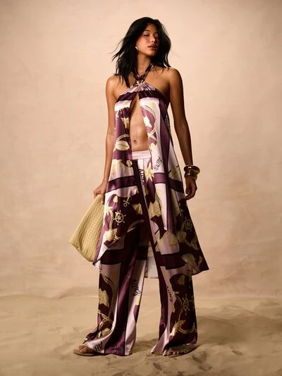 AiiRZ Damski szalik z kołnierzykiem typu halter, z nadrukiem, bez rękawów, drapowany, letni, plażowy, wakacyjny, swobodny