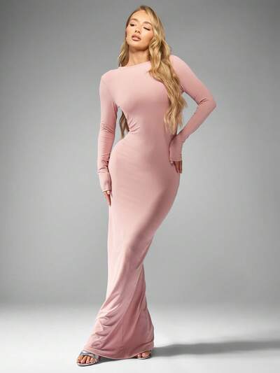 MISSGUIDED Elegancka, dopasowana sukienka maxi z długim rękawem
