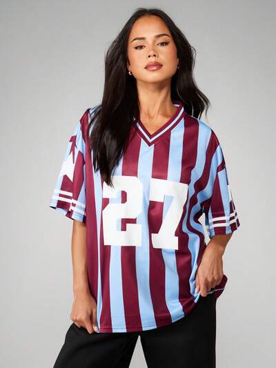 MISSGUIDED Duża, pasiasta koszulka piłkarska z numerem