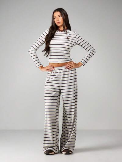 Missguided x Playboy Prążkowany, prążkowany top z szerokimi nogawkami
