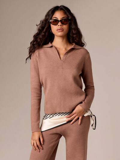 AiiRZ Sweter z dzianiny w stylu retro z kołnierzykiem i dekoltem w serek, długi rękaw, jesień, zima, swobodny, podstawowy, niezbędny, minimalistyczny, modny, klasyczny, w stylu preppy