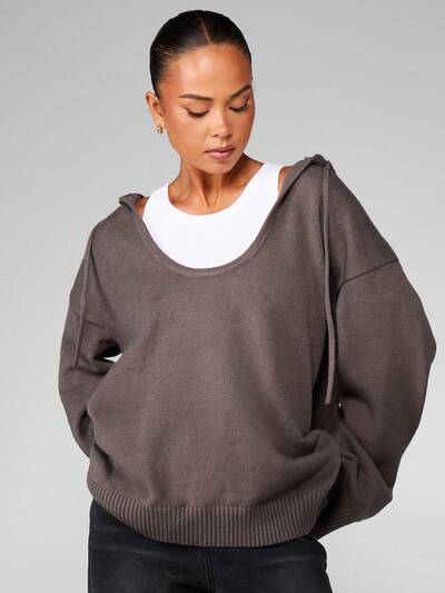 MISSGUIDED Bluza z kapturem i okrągłym dekoltem w dużym rozmiarze i długimi rękawamiKod: SAVE25
