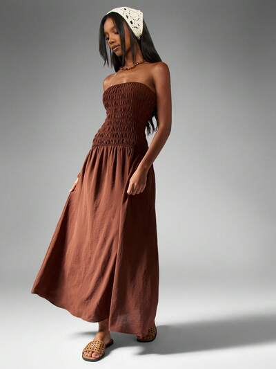 MISSGUIDED Sukienka maxi bandeau z marszczeniami i obniżoną talią