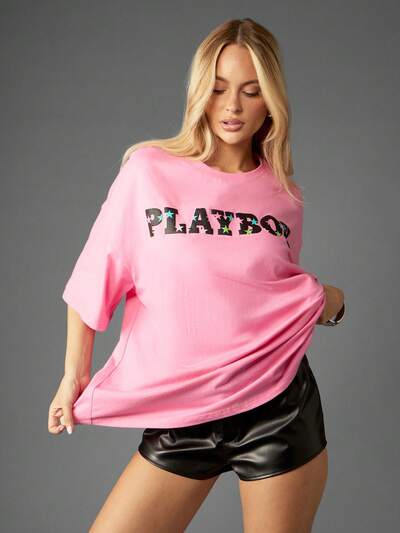 Missguided x Playboy Luźna, wygodna koszulka z nadrukiem z logo BunnyKod: SAVE25