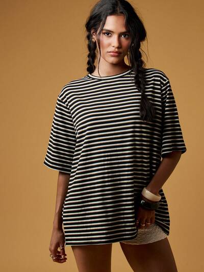 MISSGUIDED Luźny, prosty, swobodny T-shirt w paski, z prążkowanej tkaniny, dla kobiet-40%