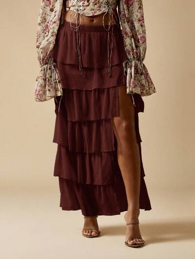 MISSGUIDED Saia longa com babados em camadas e fenda lateral