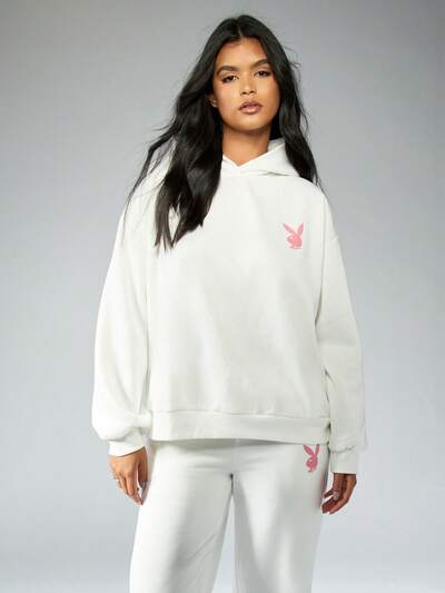 Missguided x Playboy Moletom com capuz oversized Loungewear com logotipo icônico de coelho