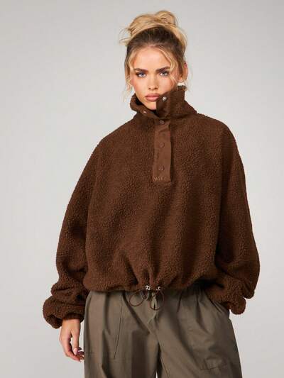 MISSGUIDED Jaqueta cropped oversized Borg com meio zíper