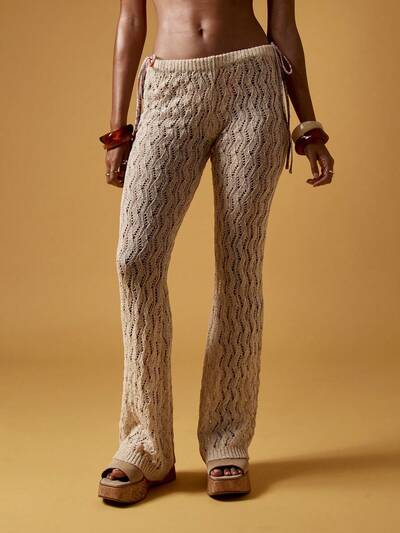 MISSGUIDED Calças de suéter apresentam crochê de malha boho pernas largas
