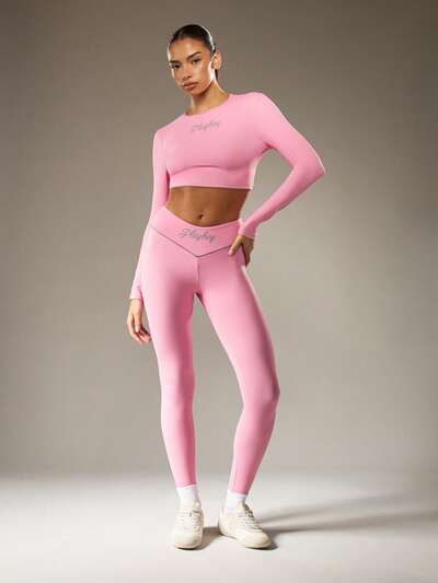 Missguided x Playboy Conjunto de blusa curta de manga comprida com leggings-50%