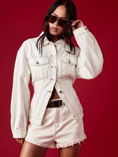 MISSGUIDED Jaqueta Trucker Denim Ajustada com Costuras Contrastantes