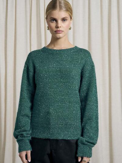AiiRZ Suéter Festivo de Natal Brilhante, Manga de Balão de Tricô com Paetês Metálicos, Mistura de Lã, Jumper Aconchegante Clássico