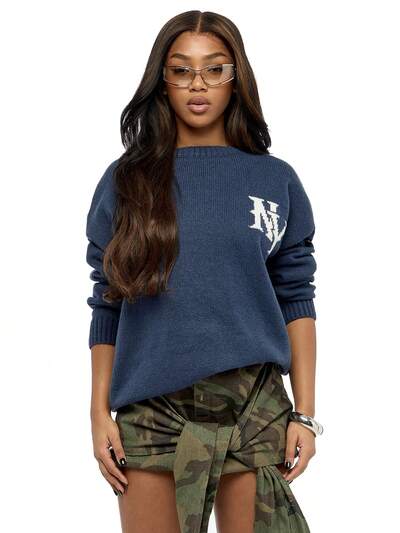 SUMWON WOMEN Suéter de Tricô Gola Redonda Confortável Estilo Universitário Brasão Logotipo Patch Remendo Ajuste Relaxado Barra Nervurada Outono Inverno Moletom Casual-55%