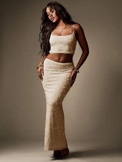 MISSGUIDED Conjunto de duas peças com top curto e saia longa e alças finas