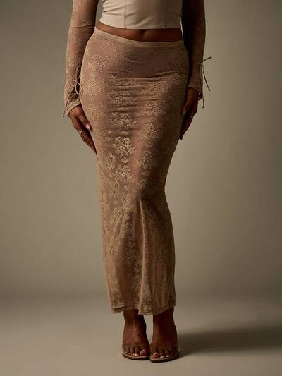MISSGUIDED Conjunto de top curto de renda floral e saia longa