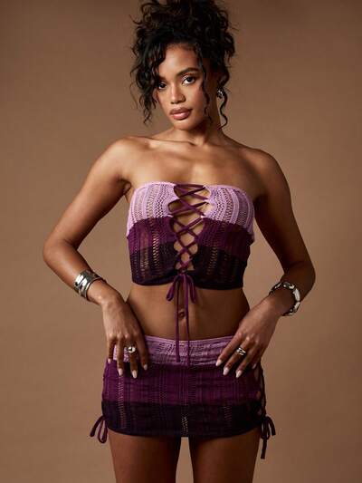 MISSGUIDED Conjunto de espartilho de crochê com cadarço ombré-50%