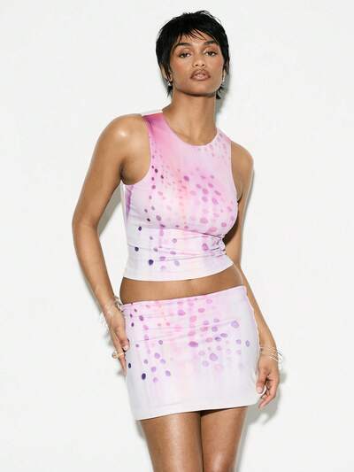 KIZN Conjunto Coordenado Moderno de Bolinhas, Mini Saia com Top Cropped Combinando, Conjunto de Duas Peças para Festa de Verão, Festival, Clube, Estampado de Designer-55%