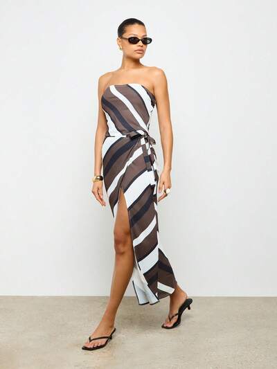 AiiRZ Conjunto de Top Cropped Bandeau Listrado e Saia Envolvente Midi-50%