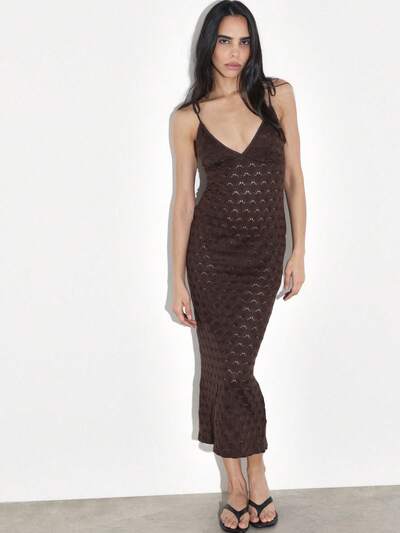 KSTM Vestido de Tricô Midi com Decote em V, Alças de Amarrar, Padrão Texturizado e Detalhe Franzido, Manga Longa, Estilo Bodycon para Outono e Inverno