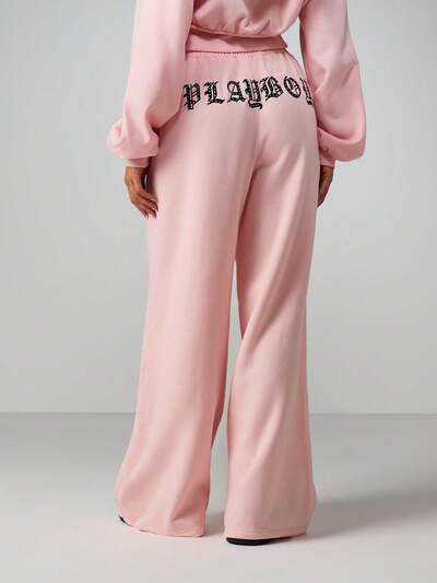 Missguided x Playboy Calça de moletom larga com debrum rosa e cós elástico-40%