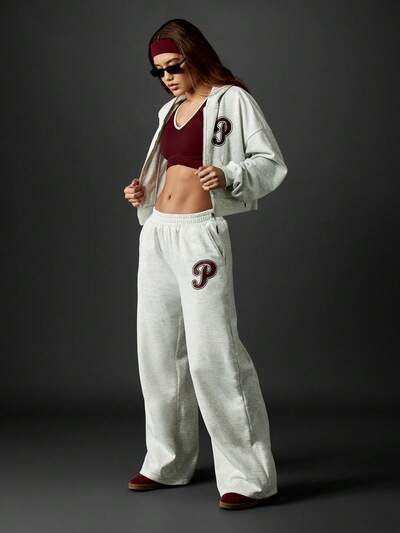 Missguided x Playboy Calça de moletom universitária de perna larga com estampa gráfica-40%