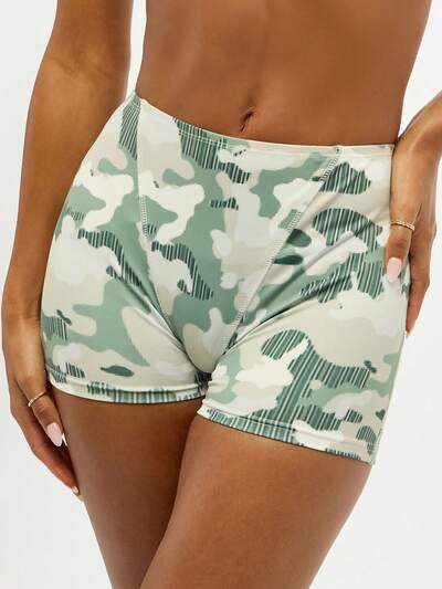 SUMWON WOMEN Shorts Curtos de Cintura Alta Estampa Camuflada, Mini Hot Pants, Parte de Baixo para Festival, Praia, Atividades, Corrida, Fitness, Verão