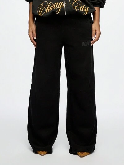 SUMWON WOMEN Calça de Moletom Casual com Perna Larga e Detalhe de Ribana na Cintura Elástica, Estilo Esportivo Streetwear, Conforto de Inverno, Macia Athleisure