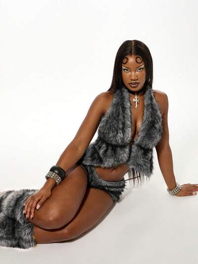 SUMWON WOMEN Regata com Alça Alta de Pele Sintética com Detalhe de Amarração nas Costas, Festa de Inverno do Festival-45%