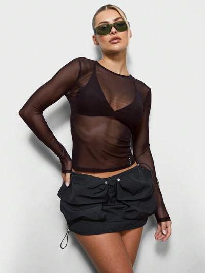 SUMWON WOMEN Top de Manga Longa Transparente em Tela, Declaração de Moda de Festa de Clube de Outono, Cropped T-ShirtUS$ 6,91US$ 8,14