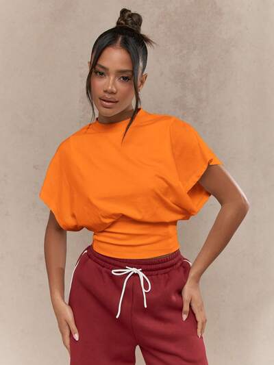 MISSGUIDED Camiseta curta oversized de manga curta com bainha de bolhas e cintura marcada-50%
