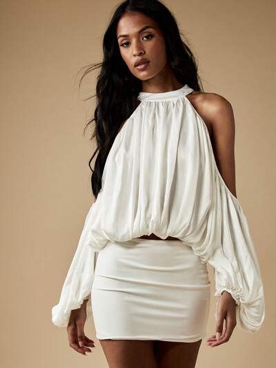 MISSGUIDED Cold Shoulder Halter Neck Bubble Sleeve Blouse-40%