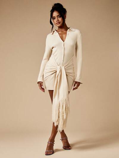 MISSGUIDED Knitted Bodycon Mini Dress With Long Sleeve Button Down Tie Front-45%