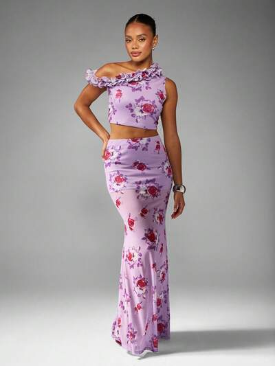 MISSGUIDED Ruffle Off Shoulder Crop Top With Fitted Maxi Skirt-35%