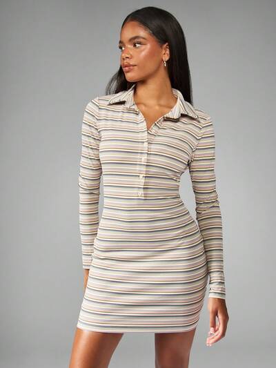 MISSGUIDED Collared Button Up Mini Dress With Stripes-45%