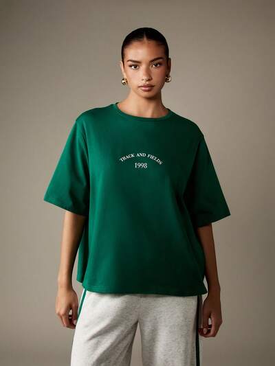 MISSGUIDED Oversized T Shirt With Retro Track Text Print-45%
