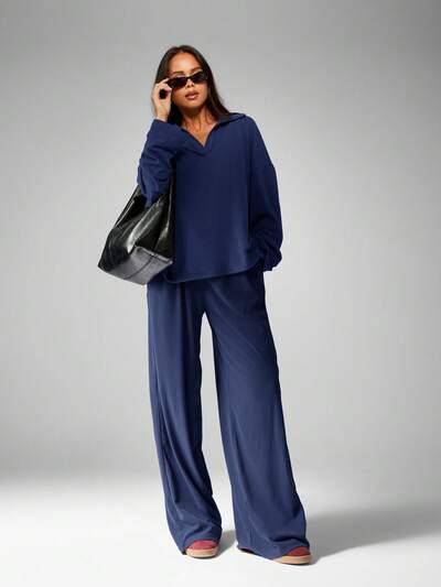 MISSGUIDED Soft Touch Co Ord Set With V Neck Top-45%