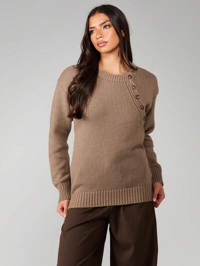 MISSGUIDED Ribbed Knit Sweater With Button Detail-45%