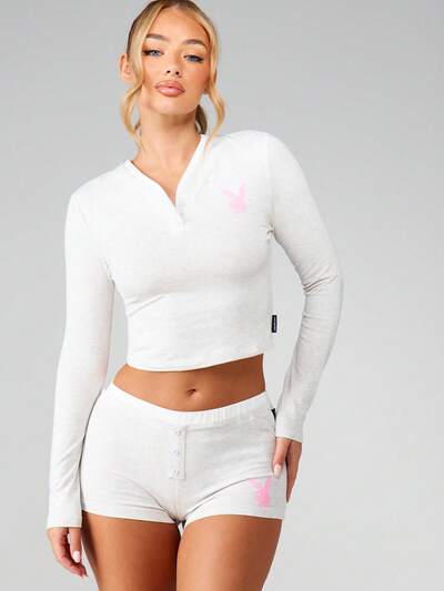 Missguided x Playboy Double Layer Top With Button Shorts Set-20%