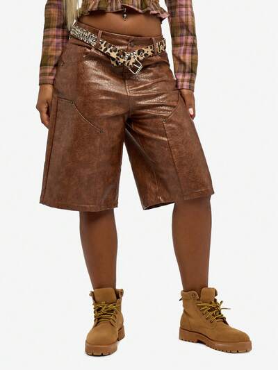 SUMWON WOMEN Textured Faux Leather Low Rise Wide Leg Carpenter Shorts With Belt And Cargo Pockets-40%
